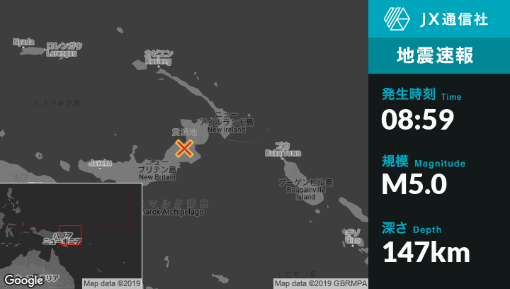 | 震源地 | パプアニューギニアのKokopoから南西100kmの地点 |