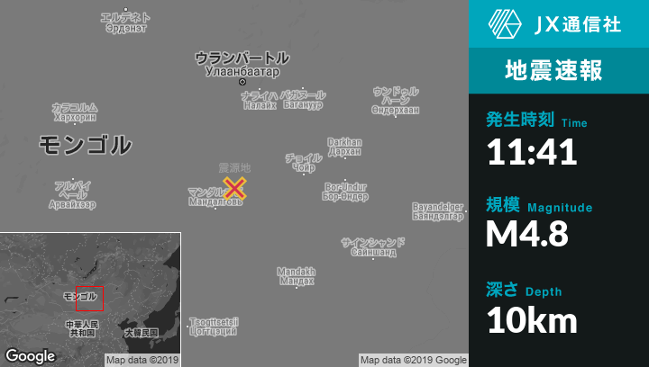 | 震源地 | モンゴルのTsantから北北西0kmの地点 |