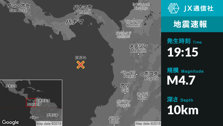 | 震源地 | パナマのTonosiから南南東214kmの地点 |