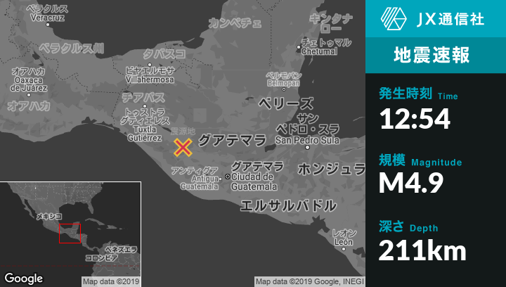 | 震源地 | グアテマラのSanta Ana Huistaから南西11kmの地点 |