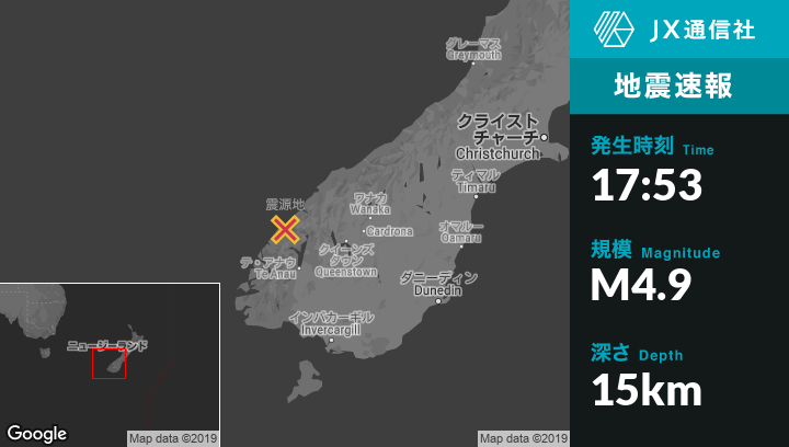 | 震源地 | ニュージーランドのTe Anauから北北西75kmの地点 |