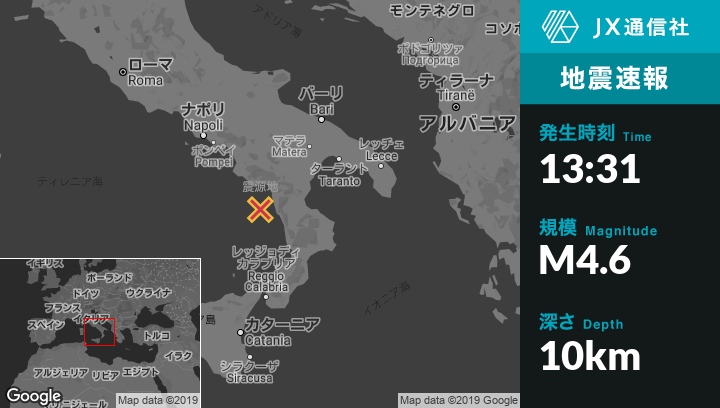 10月25日 13:31頃、イタリアのScaleaから西南西26kmの地点でM4.6の地震がありました。