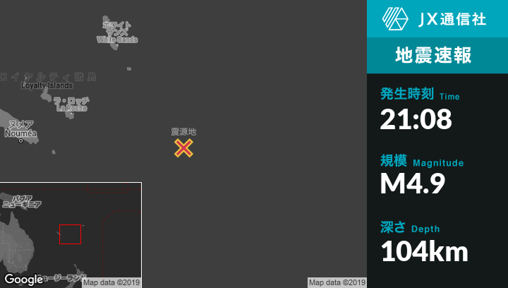 | 震源地 | ニューカレドニアのIle Hunterから西54kmの地点 |