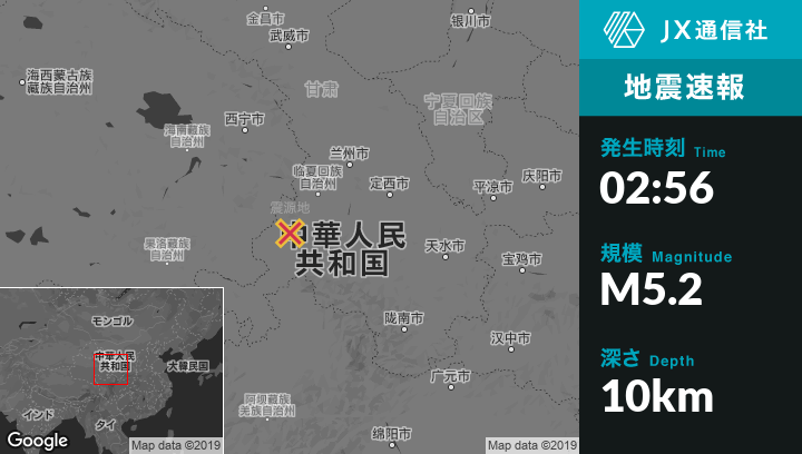 10月28日 02:56頃、中国のDamaiから南15kmの地点でM5.2の地震がありました。