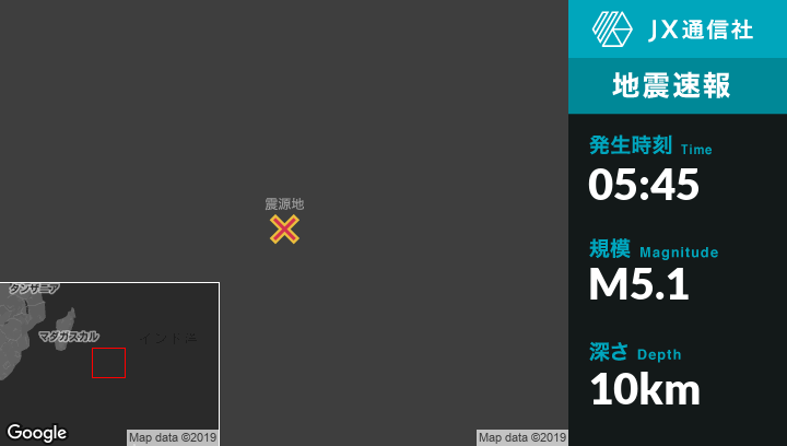 | 震源地 | レユニオン島のSaint-Philippeから南南東1024kmの地点 |