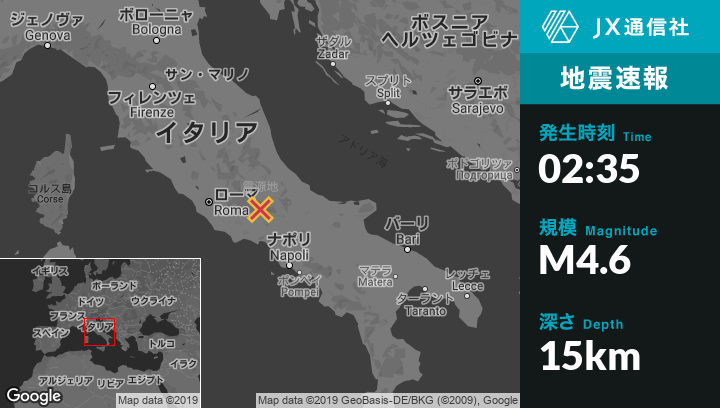 11月08日 02:35頃、イタリアのVillavallelongaから西0kmの地点でM4.6の地震がありました。