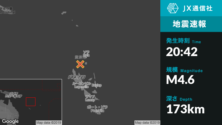 | 震源地 | バヌアツのSolaから南西60kmの地点 |