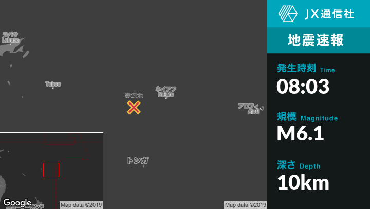 | 震源地 | トンガのPangaiから北西145kmの地点 |