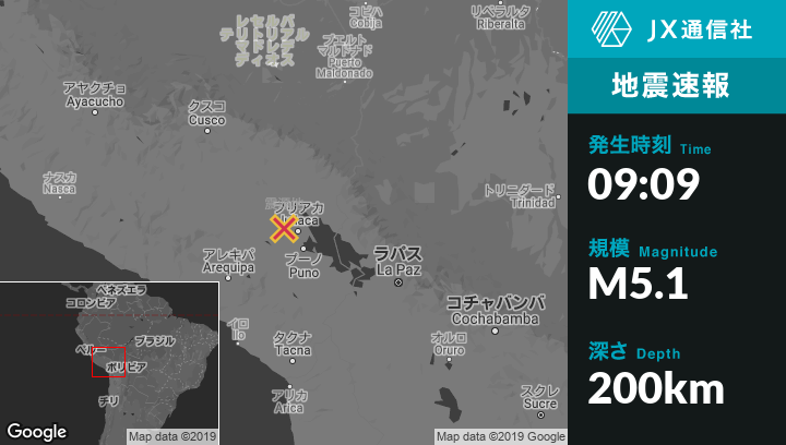 | 震源地 | ペルーのLampaから西北西6kmの地点 |