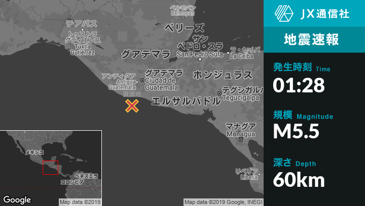 | 震源地 | グアテマラのPuerto San Joseから南南西31kmの地点 |