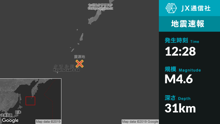 | 震源地 | ロシアのSevero-Kuril'skから南南西291kmの地点 |