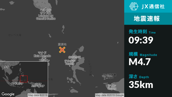 | 震源地 | インドネシアのTobeloから西北西164kmの地点 |