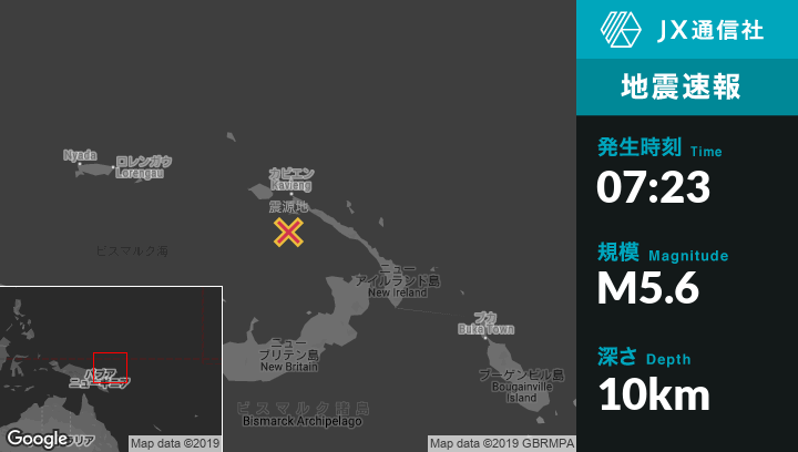 | 震源地 | パプアニューギニアのKaviengから南69kmの地点 |