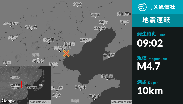 12月05日 09:02頃、中国のYangjiapoから東北東2kmの地点でM4.7の地震がありました。