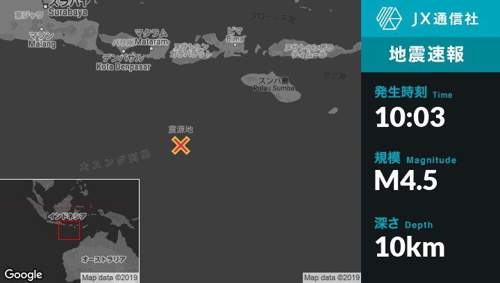 | 震源地 | インドネシアのBesisoraから南289kmの地点 |