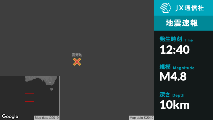 12月06日 12:40頃、オーストラリアのAlbanyから南1606kmの地点でM4.8の地震がありました。