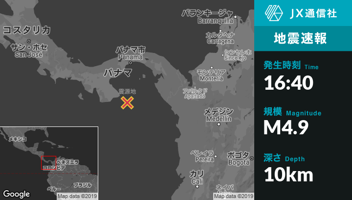 | 震源地 | パナマのPedasiから東南東46kmの地点 |