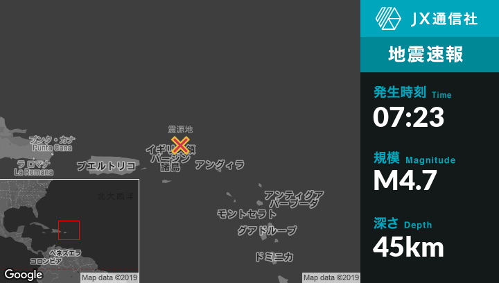 | 震源地 | イギリス領バージン諸島のRoad Townから北北東66kmの地点 |