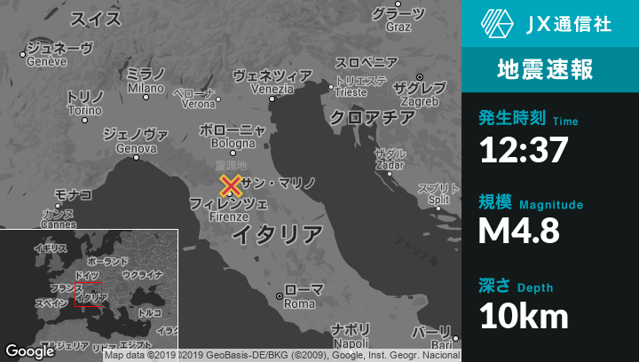 | 震源地 | イタリアのScarperiaから西北西4kmの地点 |