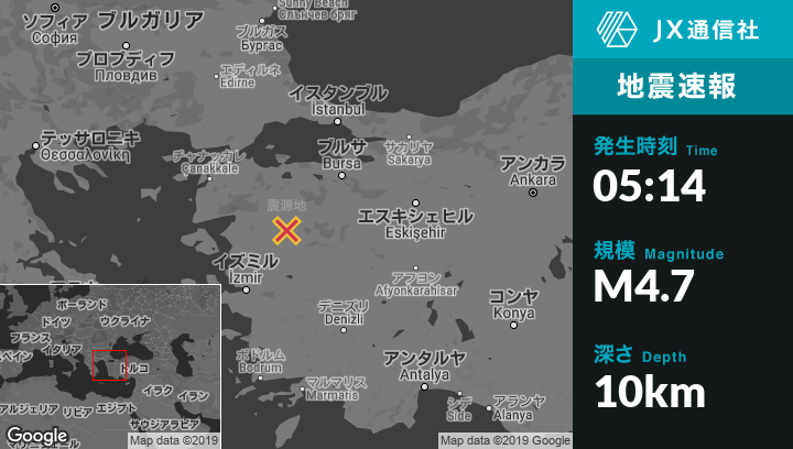 | 震源地 | トルコのBigadicから西北西16kmの地点 |