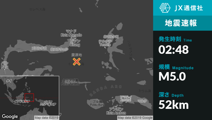| 震源地 | インドネシアのModayagから南東136kmの地点 |