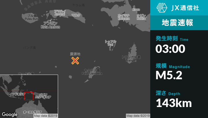 | 震源地 | インドネシアのSaumlakiから北西205kmの地点 |