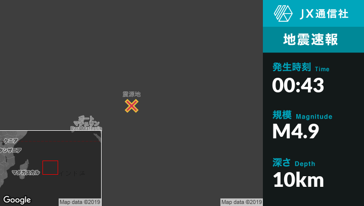 | 震源地 | モーリシャスのPort Mathurinから東北東248kmの地点 |