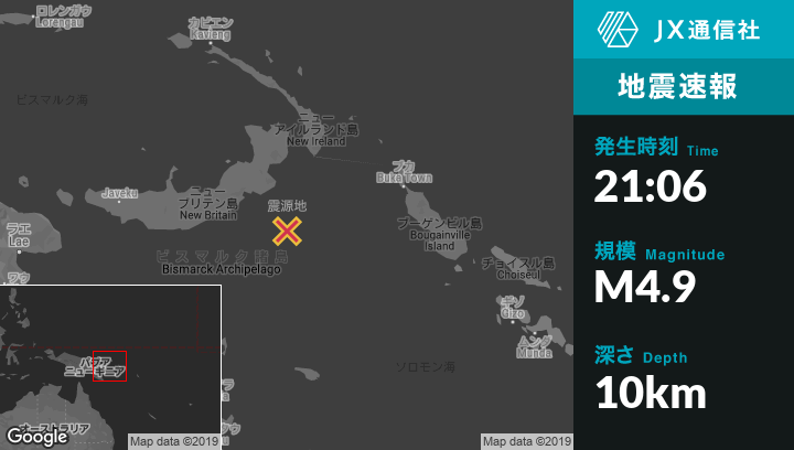 | 震源地 | パプアニューギニアのKokopoから南201kmの地点 |