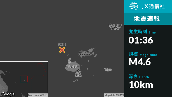 | 震源地 | フィジーのLautokaから北北西163kmの地点 |