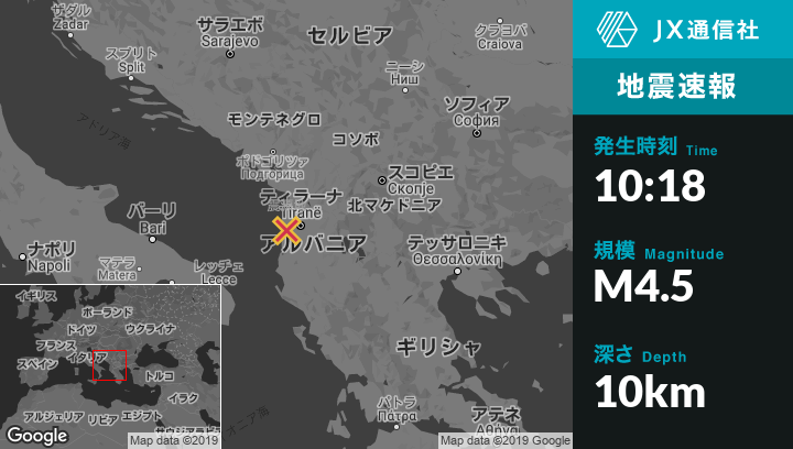 | 震源地 | アルバニアのShijakから西3kmの地点 |