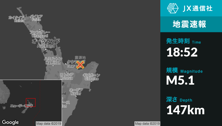 | 震源地 | ニュージーランドのWhakataneから北北東41kmの地点 |