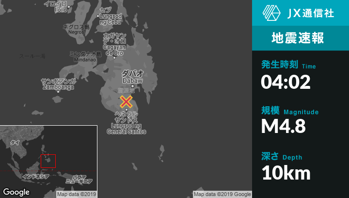 | 震源地 | フィリピンのKiblawanから西8kmの地点 |