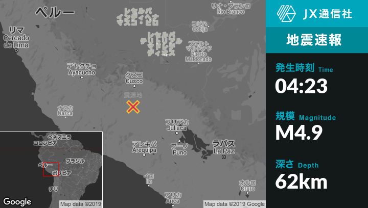 | 震源地 | ペルーのSanto Tomasから北北東19kmの地点 |