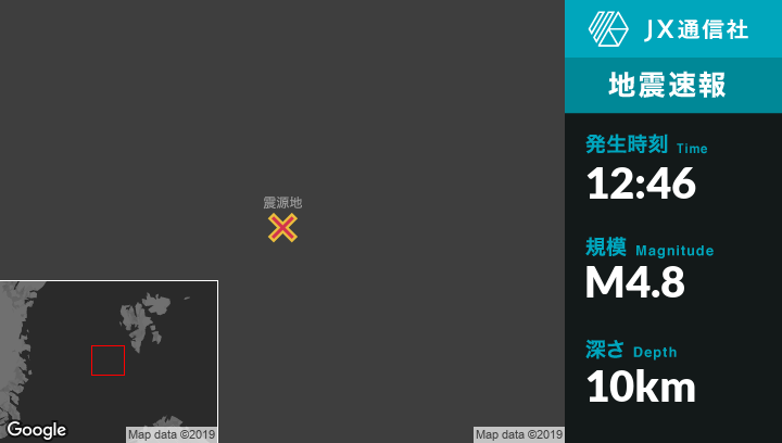 | 震源地 | スバールバル諸島とヤンマイエン島のLongyearbyenから南西324kmの地点 |