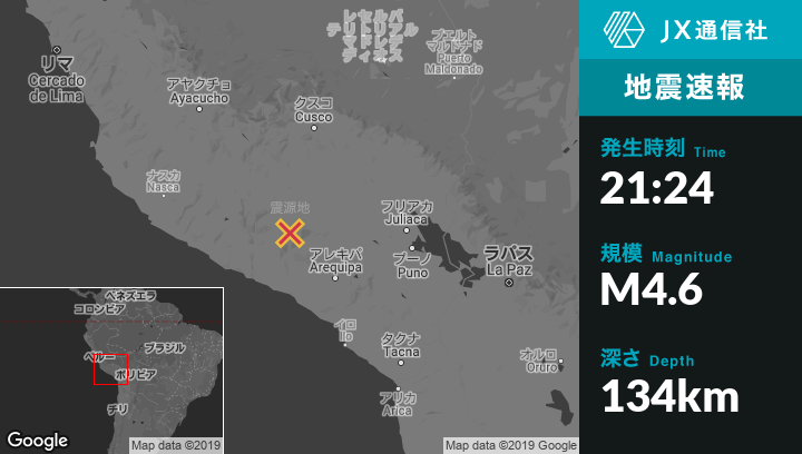 | 震源地 | ペルーのOrcopampaから南南西20kmの地点 |