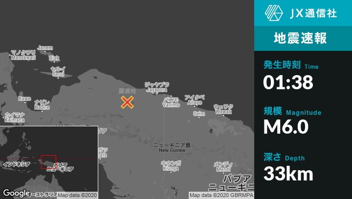 | 震源地 | インドネシアのAbepuraから西141kmの地点 |