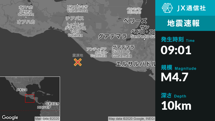 | 震源地 | メキシコのSuchiateから南西98kmの地点 |
