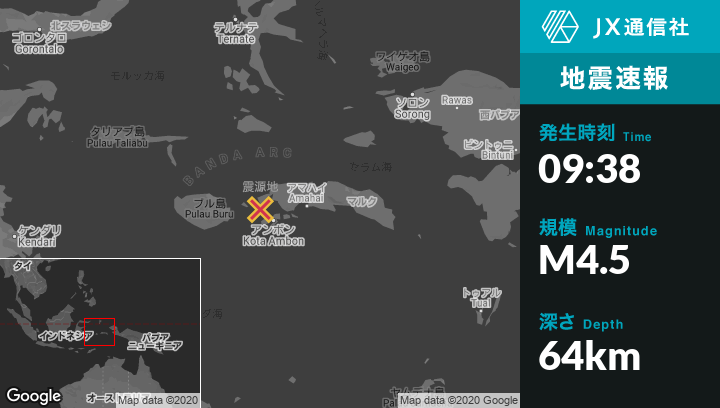 | 震源地 | インドネシアのHilaから北北西37kmの地点 |