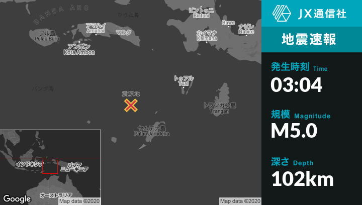 | 震源地 | インドネシアのSaumlakiから北北西206kmの地点 |