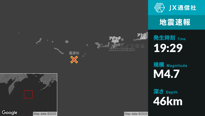 | 震源地 | アラスカのAmatignak Islandから西南西51kmの地点 |