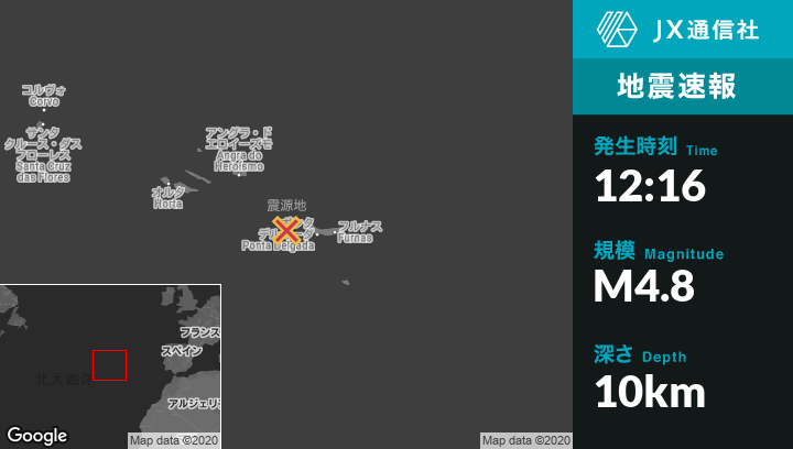1月27日 12:16頃、ポルトガルのArrifesから西北西52kmの地点でM4.8の地震がありました。