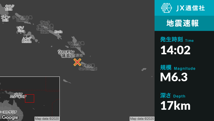 | 震源地 | ソロモン諸島のKirakiraから西北西105kmの地点 |