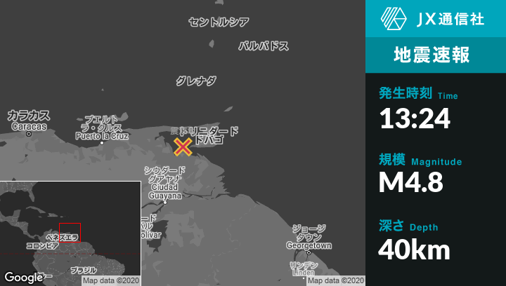 | 震源地 | ベネズエラのPedernalesから北北東31kmの地点 |
