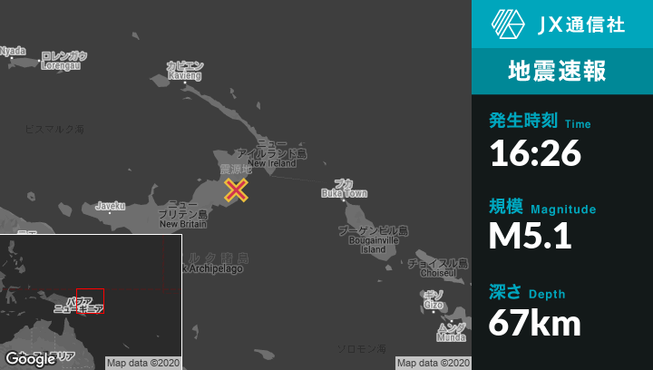 | 震源地 | パプアニューギニアのKokopoから南南西81kmの地点 |