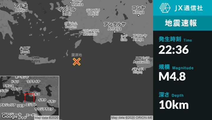 | 震源地 | ギリシャのKarpathosから東南東69kmの地点 |
