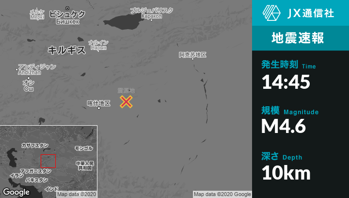 1月31日 14:45頃、中国のArzakから東96kmの地点でM4.6の地震がありました。