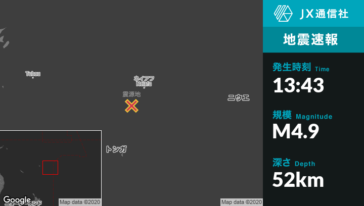 | 震源地 | トンガのPangaiから北北西61kmの地点 |