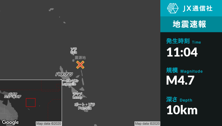 2月03日 11:04頃、バヌアツのSolaから南東79kmの地点でM4.7の地震がありました。