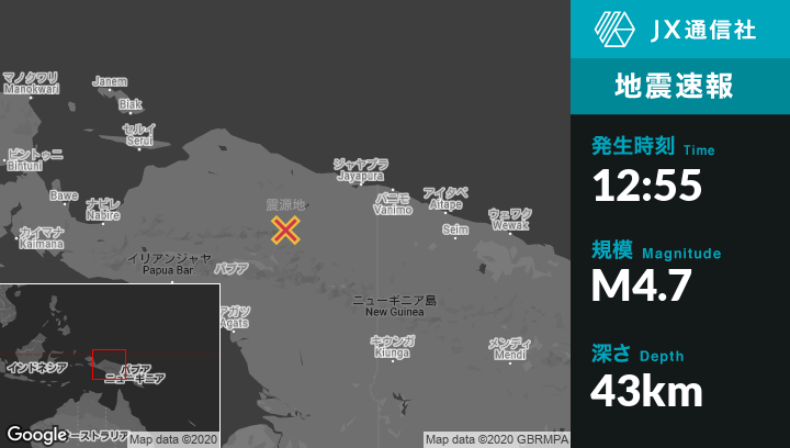 | 震源地 | インドネシアのAbepuraから西南西180kmの地点 |