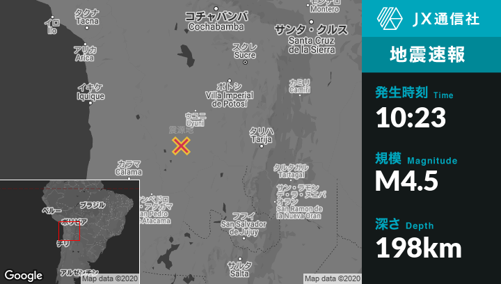 | 震源地 | ボリビアのUyuniから南南西114kmの地点 |